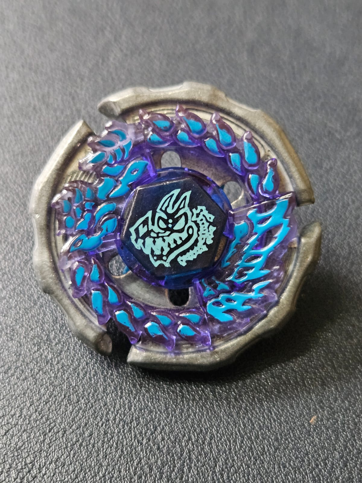 The Spin Track (100) is a low-height track that allows the Beyblade to stay close to the stadium floor, improving its attacking angles and destabilizing taller opponents. The Performance Tip (RSF – Rubber Semi-Flat) combines both attack and defense properties: the rubber provides grip for aggressive movement, while the semi-flat shape allows for more control compared to a flat tip.